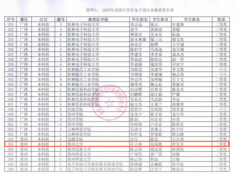 该赛事是教育部和工业和信息化部共同发起的大学生学科竞赛之一,自1994年全国大学生电子设计竞赛创办以来,大赛参赛学生增长到每年的4万人左右,被誉为“电子类学科竞赛的奥林匹克”,在高校电子信息类专业中具有极高认可度。中国规模最大、参赛范围最广、极具影响力的针对在校本专科大学生的TI竞赛,我院学子在2025年全国大学生电子设计竟赛中首次进入国赛,荣获全国总决赛二等奖。参赛学生:许立坤、刘凤凯、曾芳芳,指导老师:覃涛、何志琴。
