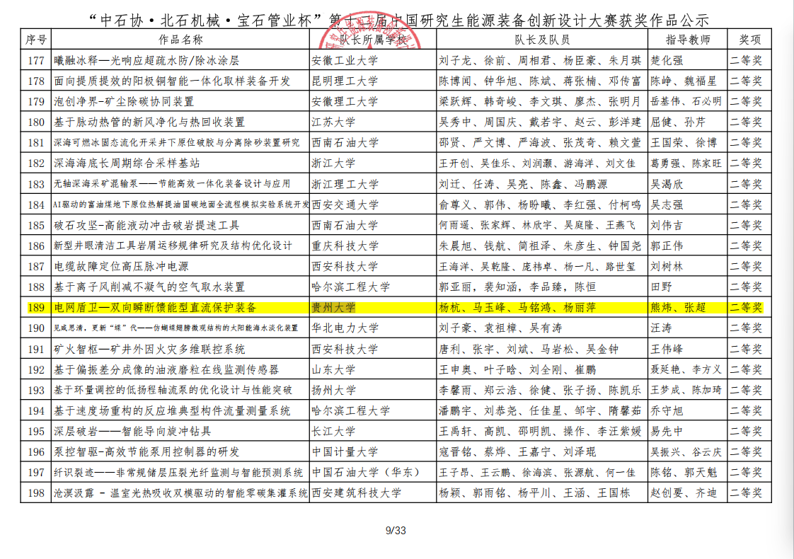 2025年9月19日至21日,在昆明理工大学圆满结束的中国研究生创新实践大赛之“中石协·北石机械·宝石管业杯”第十二届中国研究生能源装备创新设计大赛中,我院研究生团队两项成果获得国赛奖励: