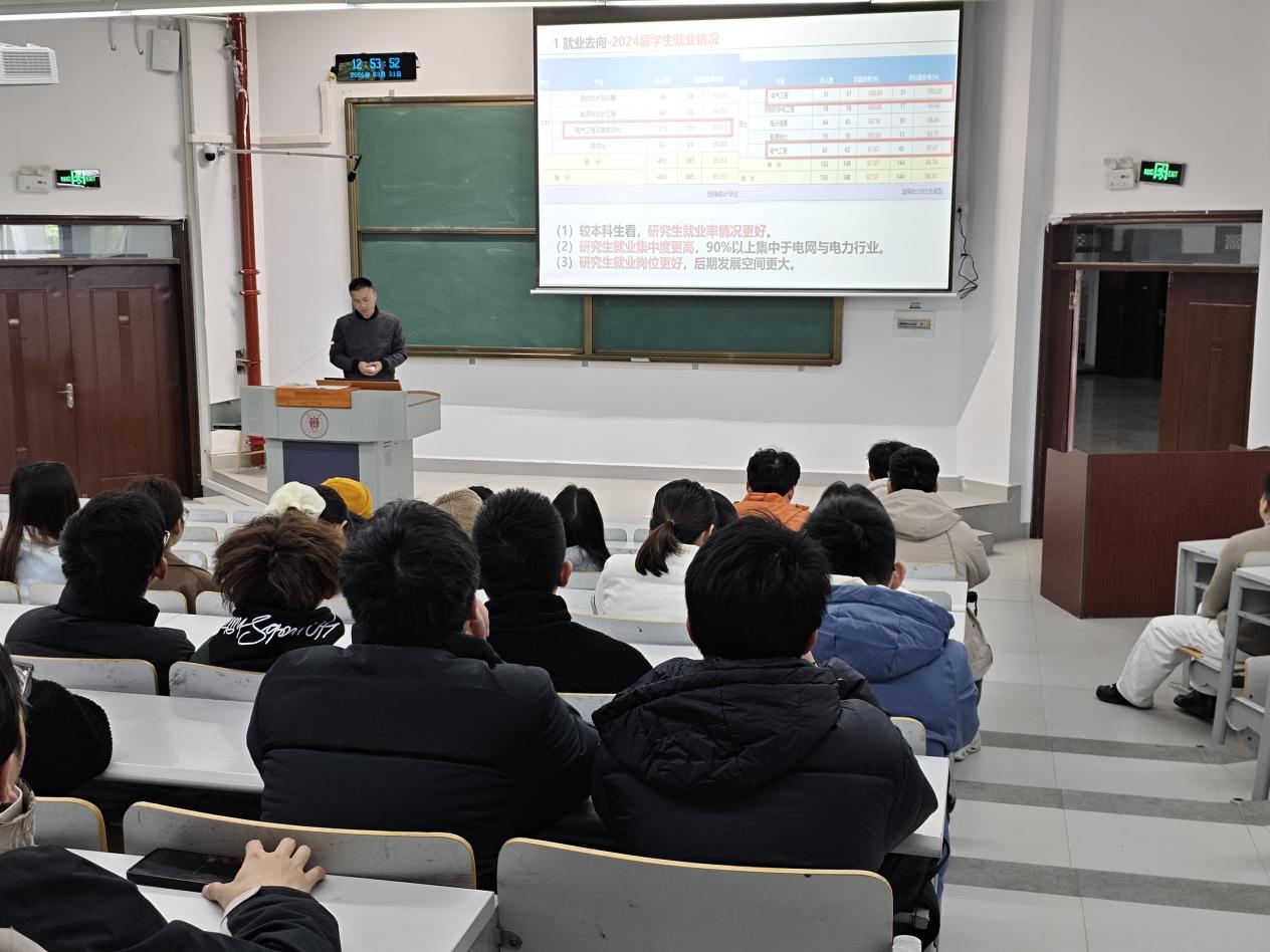 2026年3月29日至4月2日,电气工程学院先后召开23级自动化、电气工程及其自动化和测控技术与仪器专业考研动员大会。自动化系主任王霄、电力系副主任熊国江、测仪系主任张梅等三位老师亲临现场分别对各专业学生开展宣讲。