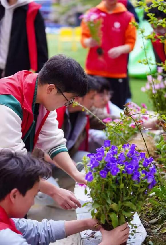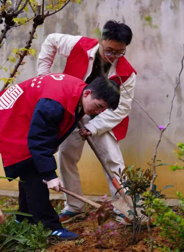 志愿者们在种树栽花