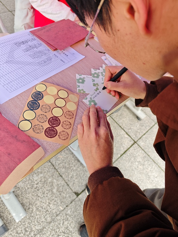 同学们积极参与线下书写雷锋精神暖心故事的活动