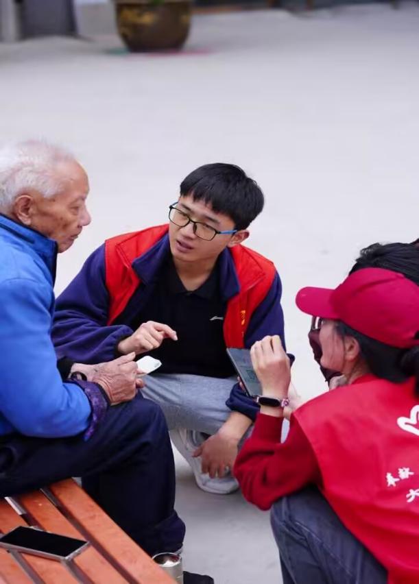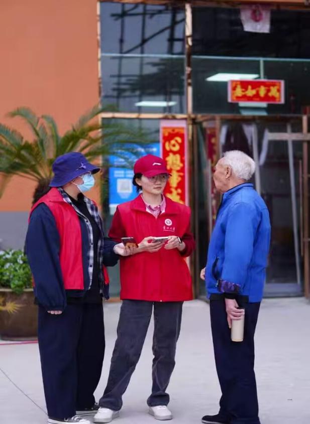 志愿者们在和老人们聊天