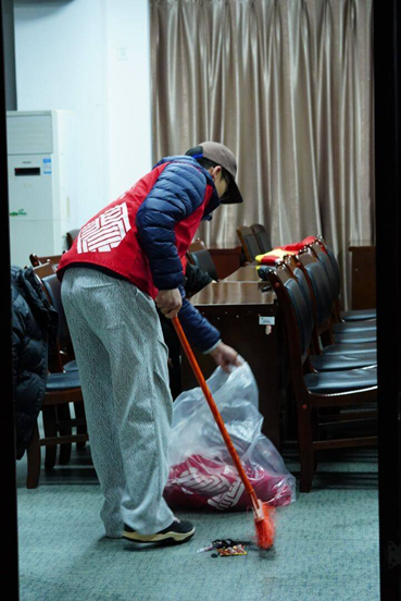 志愿者们在打扫卫生