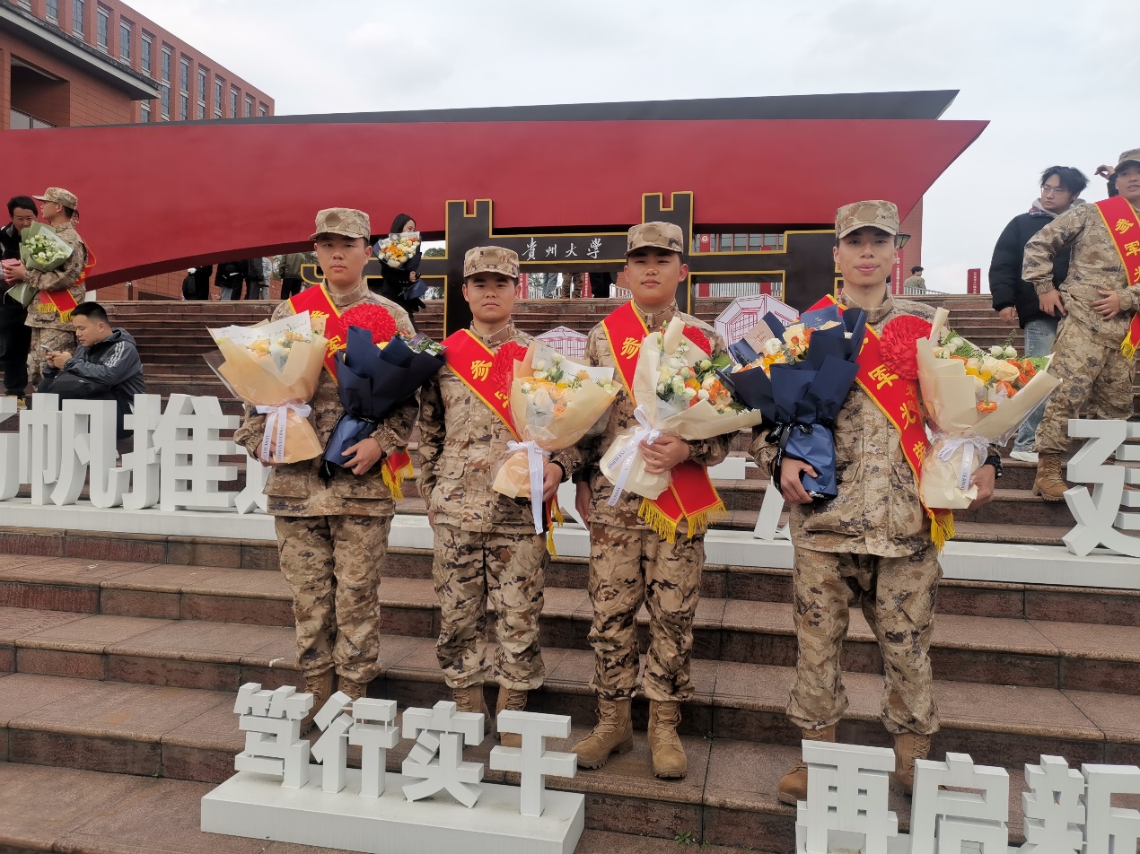 2026年春季我院共有6名同学成功入伍,除参加仪式的4名同学外,另有2名同学从生源地入伍。入伍学子的从军报国之举,为全院学生树立了光辉榜样。他们用实际行动诠释了新时代青年的责任与担当,激励着更多贵大学子立志成才、报效祖国,在强国建设、民族复兴的伟大征程中贡献青春力量。